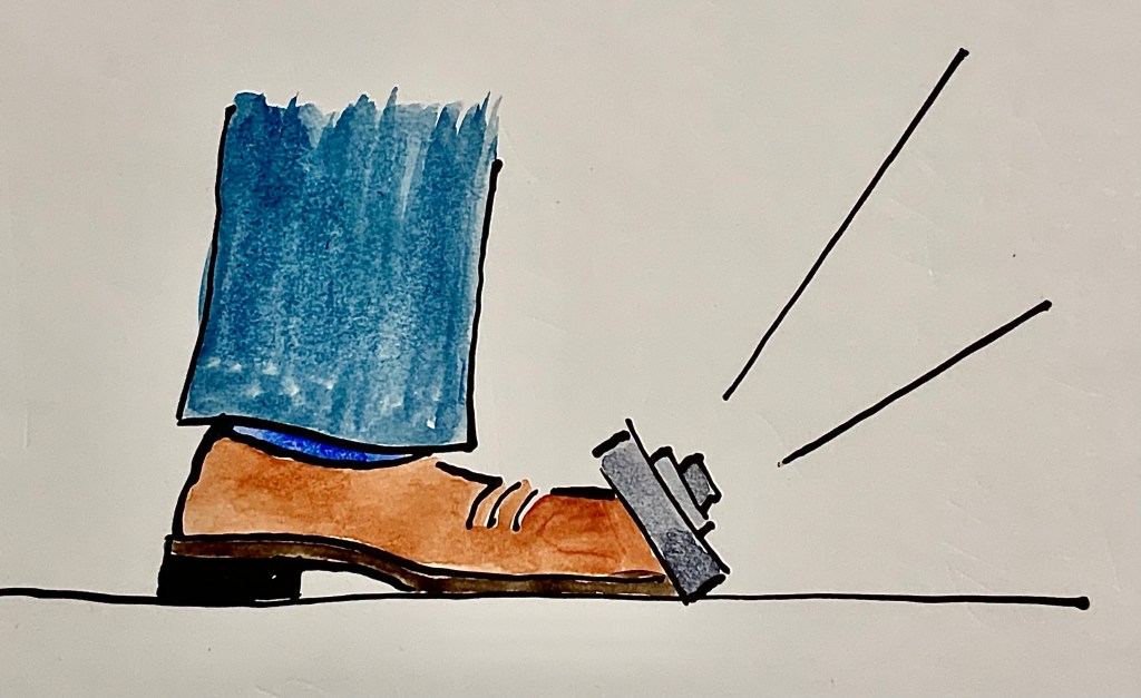 In my aim to get this blog up and running again I have decided to start with this image. A well known landmark from New York. The Empire State Building. During frequent visits many years ago that was my main subject for my photography. This is one of the images I like the most. It was not made in an ordinary way, let me tell you. It is no secret. I tripped my small camera, a Minox 35, on my foot. Like this illustration below. It was late afternoon and I needed to steady my camera. People passing by was looking at me wondering what I was doing, though this was NY. Nothing surprises. This was the result from four exposures, I think. I think I could not have made it better aiming with my hands and eyes. Or, what do you think? Without metadata on my film I think it was during the late 70´ or early 80´s.